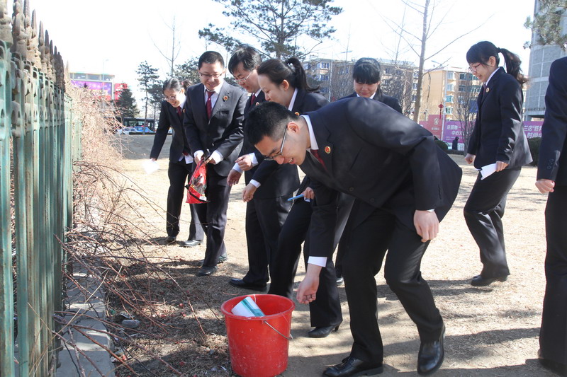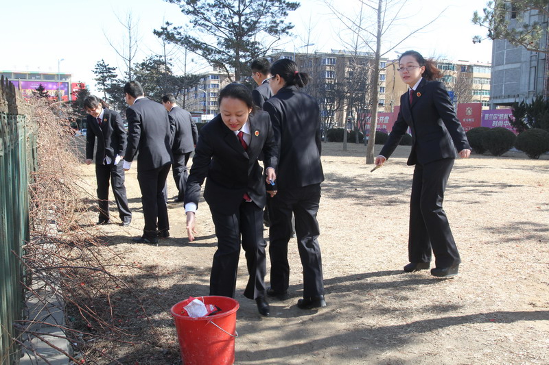 为认真贯彻落实党的十八大精神及习近平总书记系列讲话精神,深入践行社会主义核心价值观,进一步弘扬雷锋精神,推进志愿服务工作扎实深入开展。我院团支部响应团市委决定开展“青春志愿·爱满普湾”学雷锋服务活动号召,于2015年3月9日,组织近二十名青年干警组成青年志愿者服务队,开展绿色环保志愿服务活动。