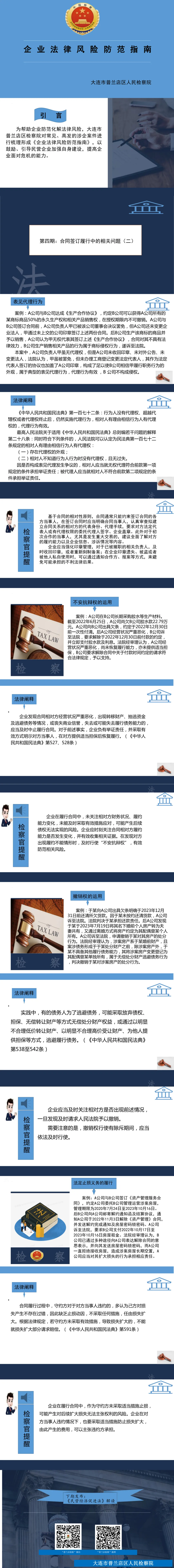 2025年是全面完成“十四五”规划的收官之年和“十五五”规划的论证、布局之年,也是落实全省优化营商环境暨三年行动决胜之年,为聚焦习近平总书记在民营企业工作座谈会上的讲话精神,服务保障民营经济发展壮大,普兰店检察院推出【优化营商环境】专栏,对常见、高发的企业法律风险进行梳理形成《企业法律风险防范指南》,助力企业维护合法权益。今天推出的是【优化营商环境】企业法律风险防范指南第四期——合同签订履行中的相关问题(二)。