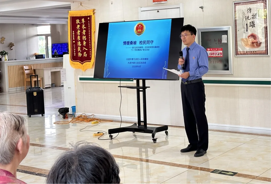 莫道桑榆晚,为霞尚满天。为提升养老机构老年人的法律意识,切实维护其合法权益,进一步完善养老机构安全监管体系,细化落实普兰店区检察院和区民政局联合制定的《关于建立养老机构安全监管协作配合机制的指导意见(试行)》,近日,普兰店区检察院携手区民政局,深入辖区普泽养老院、大连益寿养老服务有限公司等养老机构,开展专项普法宣传活动,此次活动依托“检察监督+民政监管”协同模式,通过强化督导检查,持续推动最高检“十一号检察建议”落地见效。