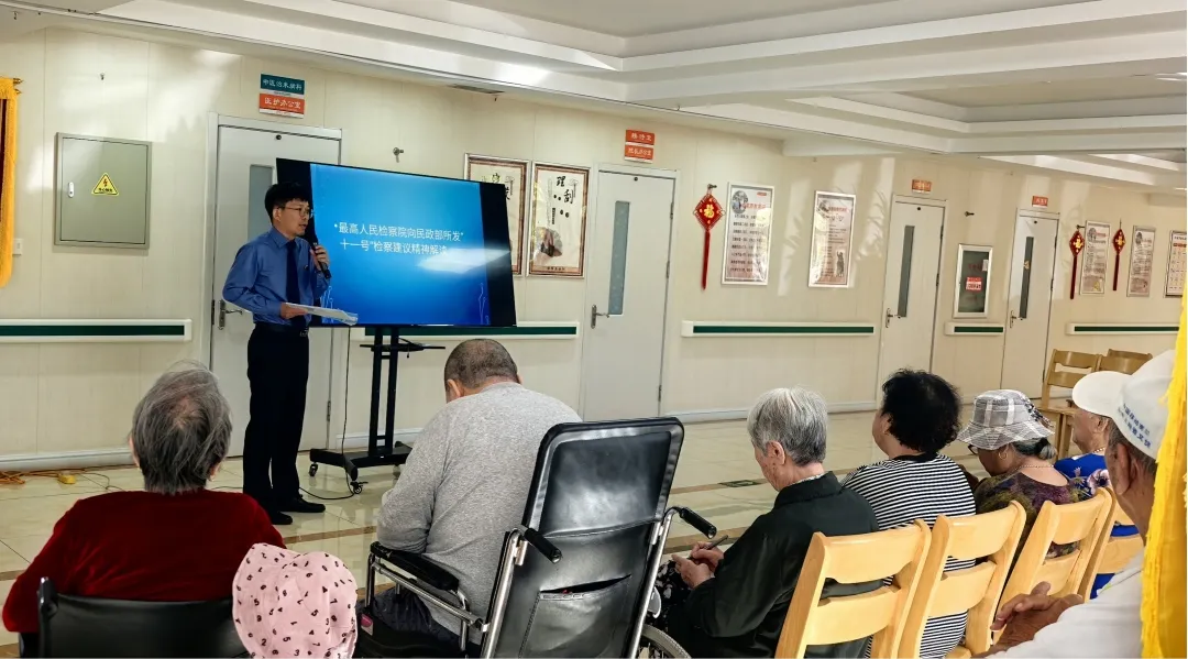 活动中,检察官始终面带微笑,以亲切的态度、通俗生动的语言,向老人们详细解读“十一号检察建议”的核心内容,其中蕴含的关爱老年人、呵护老年人的人文情怀,深深打动在场每一位老人,获得广泛认同。